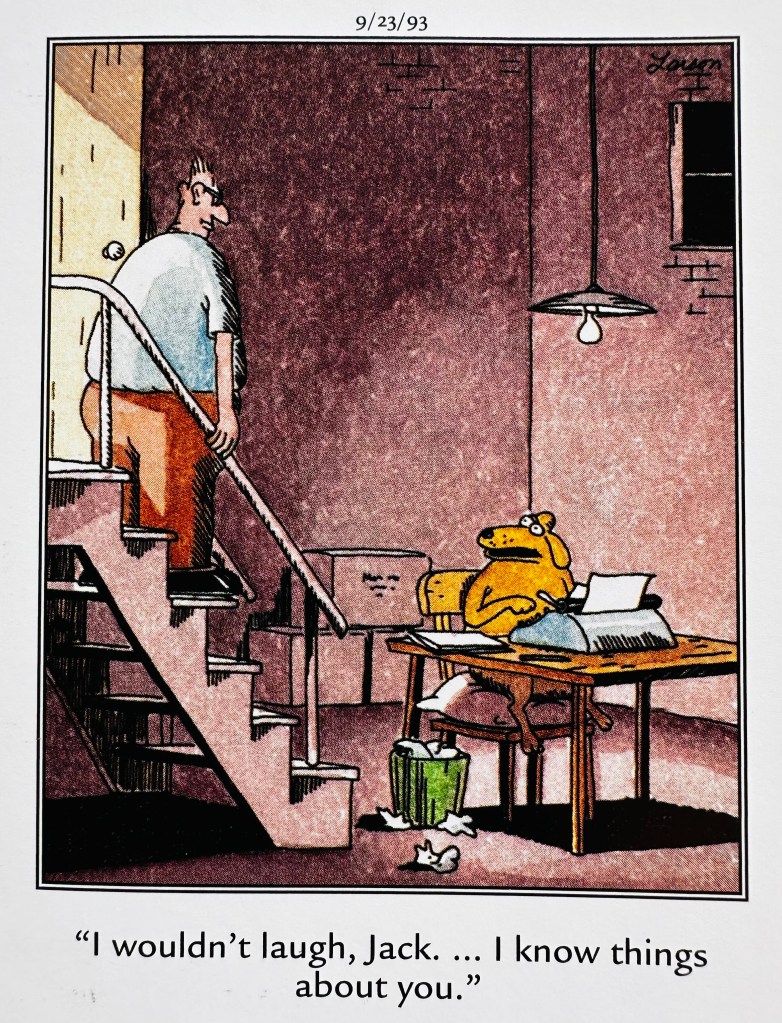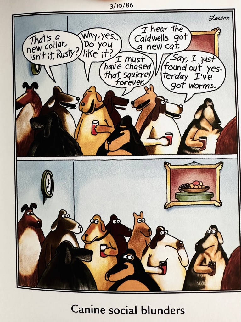 I’ve also decided to start my days by going to The Far Side. I’m an avid fan, and have been since the 1980’s. I’ve owned every page-a-day calendar produced and nearly cried when I found out Gary Larson had retired. It nearly broke my heart.