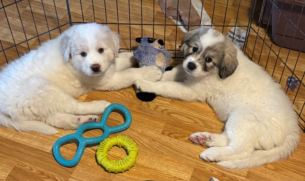 So it happened that at breakfast while working out the days puzzle my son casually mentioned an ad for Great Pyrenees crossed with Saint Bernard pups deviously placed directly above his Sudoku. “Aw, what cute pups,” he said. Unable to catch myself in time, I glanced at the picture. Is there a 12 step group for those of us hopelessly addicted to cute furry canines?